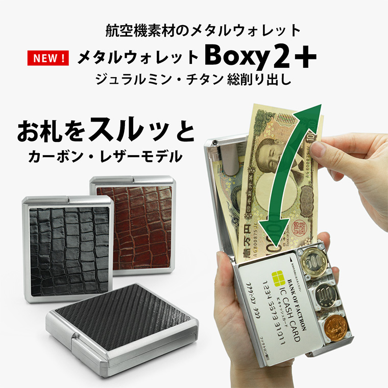 航空機素材の「メタルウォレットBoxy2プラス(カーボン・レザーモデル)」マクアケにて3/5〜4/1929までの先行販売プロジェクトを開始します。